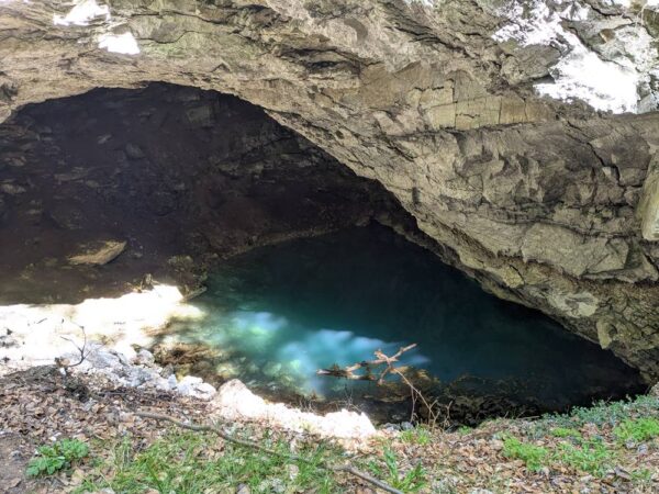 Die Kelle bei Appenrode ist eine Gips-/Karsthöhle im Naturpark Südharz – heute eine Art Resthöhle/halboffene Grotte mit kleinem Höhlensee. Gerade weil sie keine „Showhöhle“ ist, sondern eher eine Höhlenruine, wirkt sie wie ein stilles Gegenstück zu den großen Aussichtspunkten: dunkler, feuchter, nach innen gerichtet. Wenn die Sonne auf den See scheint, leuchtet er dazu in tiefem Blau – ähnlich wie zum Beispiel der Blautopf auf der Schwäbischen Alb.