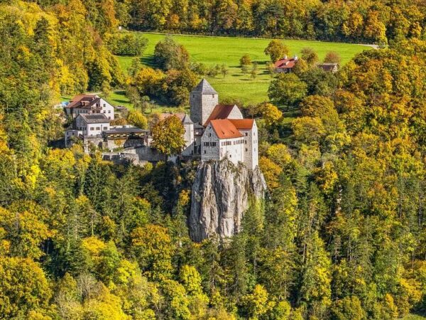 Hoch über dem Altmühltal thront die Burg Prunn – spektakulär auf einem rund 70 Meter hohen Jurafelsen gelegen und mit weitem Blick über die Landschaft. Allein diese Lage macht sie zu einem der eindrucksvollsten Burganlagen Bayerns. Doch es ist nicht nur die Aussicht: Burg Prunn gilt als eine der am besten erhaltenen und authentischsten Burgen Deutschlands – und hebt sich damit deutlich von vielen historisierend rekonstruierten Anlagen ab, wie etwa Burg Trifels.